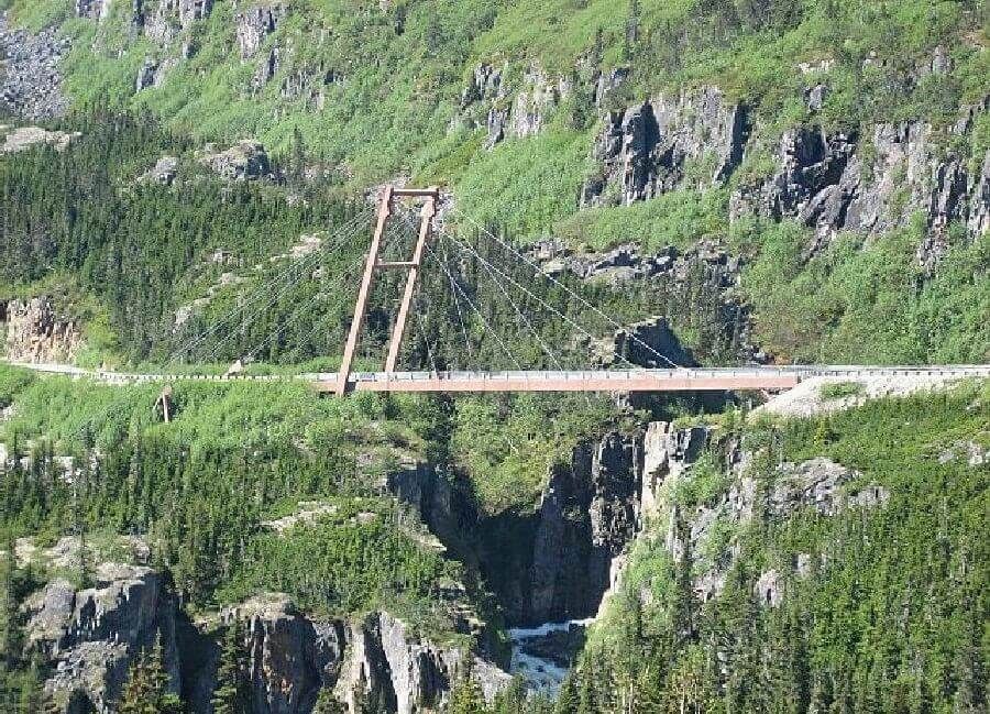 美國,阿拉斯加州,威廉·摩爾船長橋(Captain William Moore Bridge, Alaska):對於不知道工程學的駕駛來說,這種短的懸索橋似乎沒有問題。但是,阿拉斯加的威廉·摩爾船長橋因為座落在斷層線上而構成一項隱憂。為了避免發生地震災害,建造者只在橋的一端用岩石來固定,以免岩石從山上滾落。因此,如果您感到有些震動,也許可以暫緩駛過這一座橋。