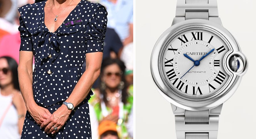 △ 在2022年溫布頓(Wimbledon)網球公開賽期間,凱特王妃戴著她的卡地亞藍氣球腕錶(Cartier Ballon Bleu de Cartier timepiece),以及她標誌性的波點圖案。作為卡地亞(Cartier)的經典設計之一,藍氣球腕錶的球形設計靈感來自氣球,俏皮而充滿趣味。