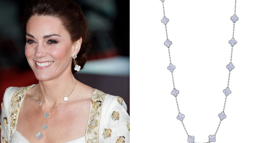 △ 在皇家阿爾伯特音樂廳(the Royal Albert Hall)舉行的英國電影學院獎(the EE British Academy Film Awards)頒獎典禮上,凱特王妃佩戴了一條珍珠母貝項鍊。這款長項鍊用途廣泛,既可單獨配戴,也可纏繞成多層。