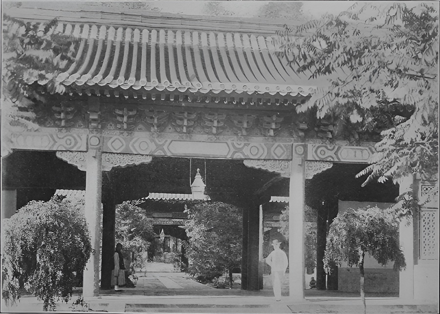△ 英國公使館入口:英國公使館坐落在北京東交民巷北邊玉河西岸的梁公府。這座精美的古老宮殿,曾屬於皇室成員康熙帝七子允祜。照片展示的是第一庭院的入口。英國公使館建築群非常龐大,包含多個庭院,每個庭院周圍都有建築。這座建築曾經遭到暴民的襲擊,他們試圖消滅所有華的外國人,包括那些歐洲各國公使館的成員。