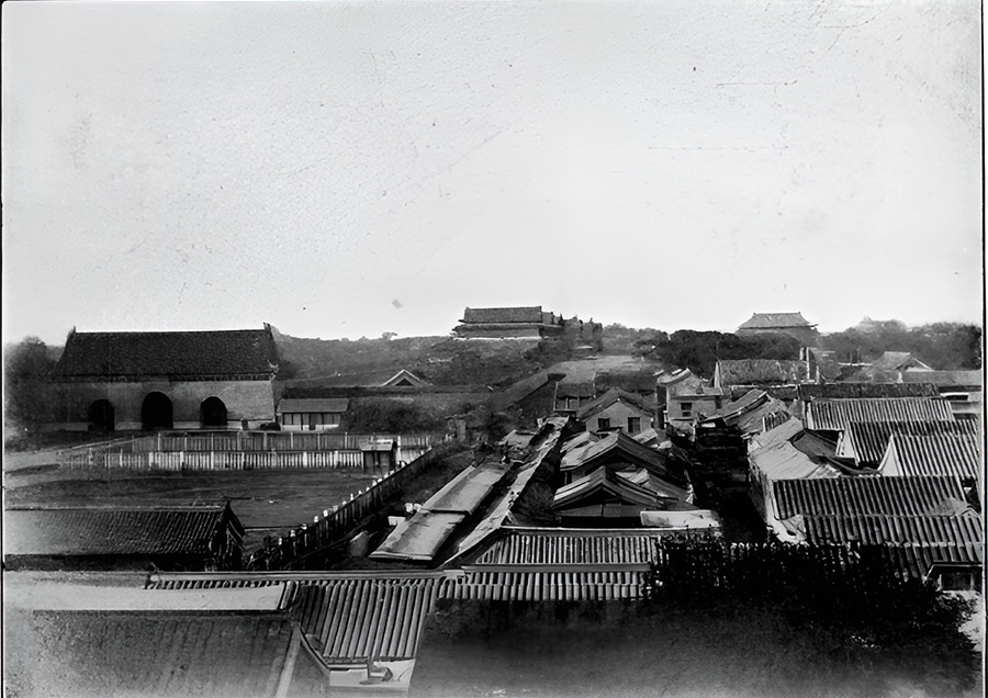 △ 遙望紫禁城:圍繞皇室成員的種種謎團,是一個頗具吸引力的話題。這張老照片是伯德(Isabella Lucy Bird)女士站在城牆上,往紫禁城(Forbidden City)的入口拍攝的,當時的紫禁城只有皇室成員及其隨從才有權居住。照片左方中央是大清門。