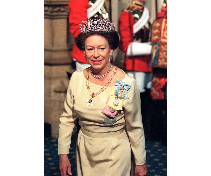 △ 1997年5月14日,瑪格麗特公主身著淡黃色連衣裙,頭戴一頂驚豔的皇冠,出席議會開幕典禮。