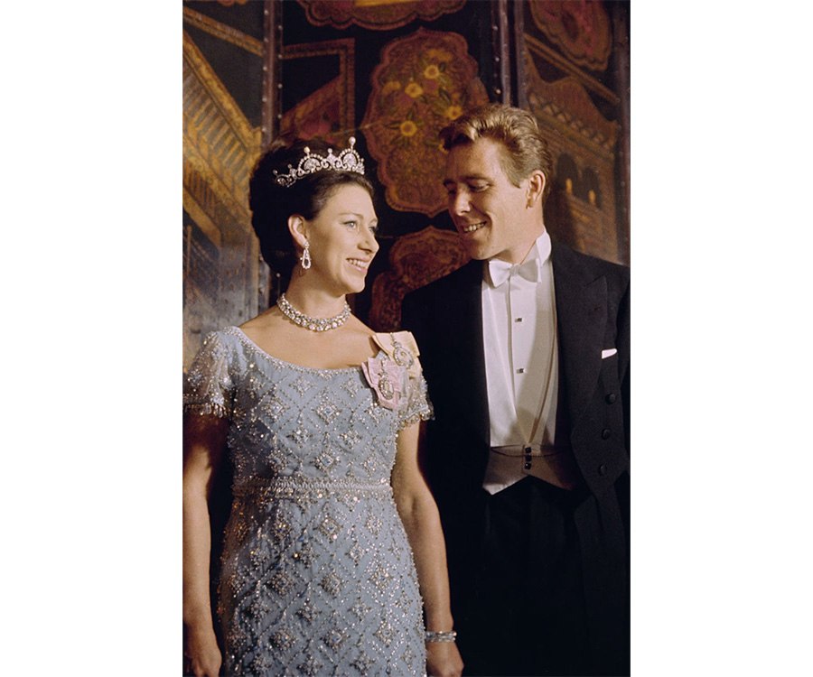 △ 1965年11月19日,瑪格麗特公主與丈夫斯諾登伯爵(the Earl of Snowdon)出席吉爾紀念基金(Winston Churchill Memorial Fund)慈善舞會。她身穿一件綴滿珠飾的藍色高腰禮服。
