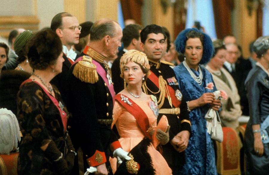 △ 1961年1月1日,瑪格麗特公主身著橙色禮服,與瑞典王子、伊朗王子、意大利前王后,一同出席比利時國王博杜安(Baudoin)的婚禮。