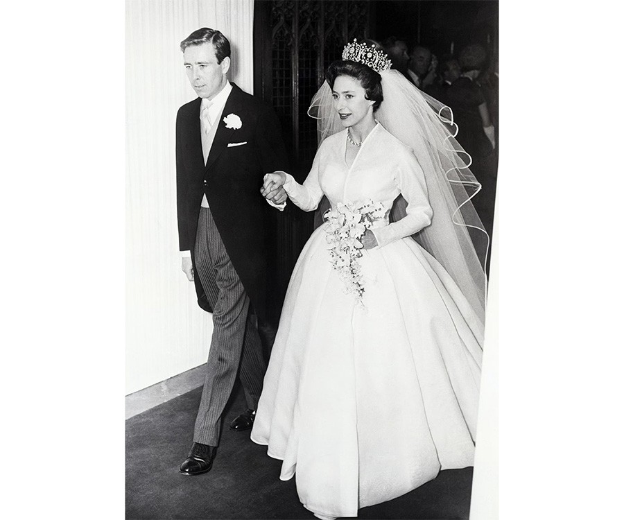 △ 1960年5月6日,瑪格麗特公主和阿姆斯壯-鐘斯(Antony Armstrong-Jones)在威斯敏斯特教堂(Westminister Abbey)舉行婚禮後離開。