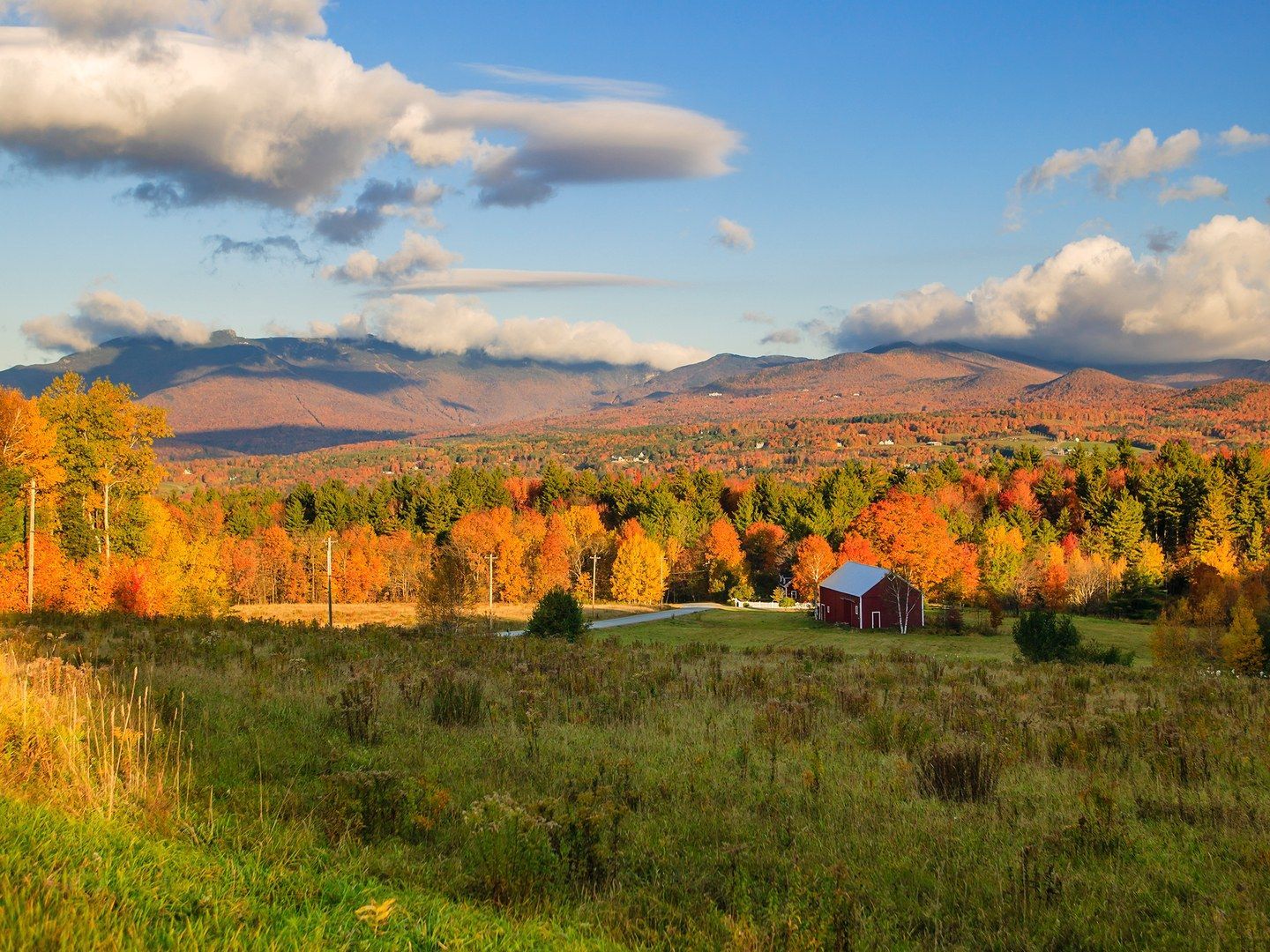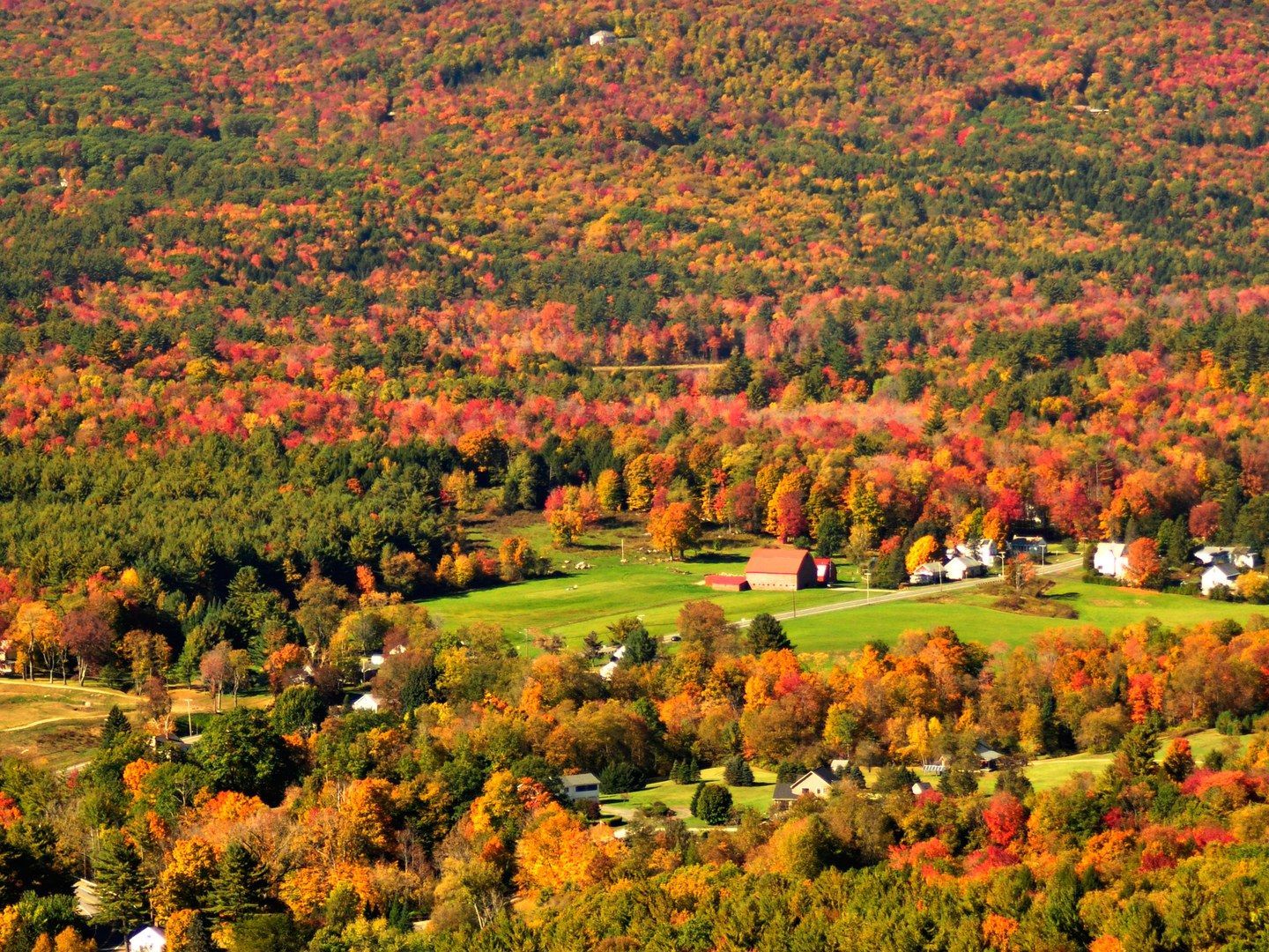 绿山,佛蒙特州:在佛蒙特州观看新英格兰叶是最好的,這裡声称有75%未開發地區。随着比其他地方越来越多的枫树,你幾乎可以冲每一个公路和乡村道路上最亮的颜色下注。若旅客要欣賞最好看的枝叶,於九月下旬至十月中旬,在Waterbury和Stowe山脊之间的11英里长绿山小路是極好的選擇。