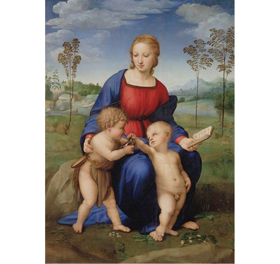 《金翅雀的聖母》(Madonna of Goldfinch或Madonna del Cardellino):拉斐爾住在佛羅倫薩時,曾與達文西(Leonardo)和米開朗基羅(Michelangelo)一起學習。《金翅雀的聖母》展現達文西對他的影響力。