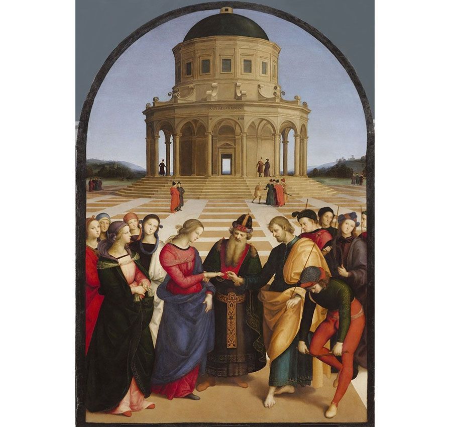 《聖女的婚姻》(The Marriage of the Virgin):也稱為Lo Sposalizio。拉斐爾於1504年,為聖弗朗切斯科(San Francesco)的聖方濟各教堂(the Franciscan church)落成所繪。它描繪聖瑪麗和約瑟夫之間的結婚儀式。