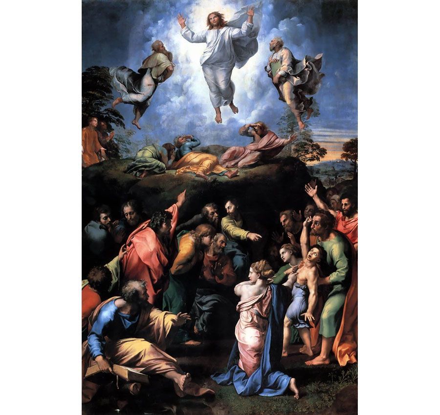 《變形》(The Transfiguration):拉斐爾在1520年去世前的最後一幅畫作。這幅畫被放在他安葬梵蒂岡的石棺頭部。